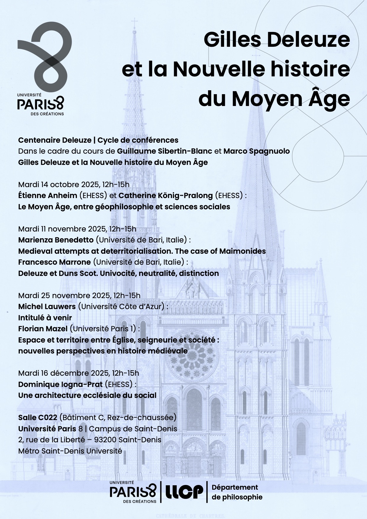 Centenaire Deleuze. Cycle de conférences. Gilles Deleuze et la Nouvelle histoire du Moyen Âge. Automne 2025