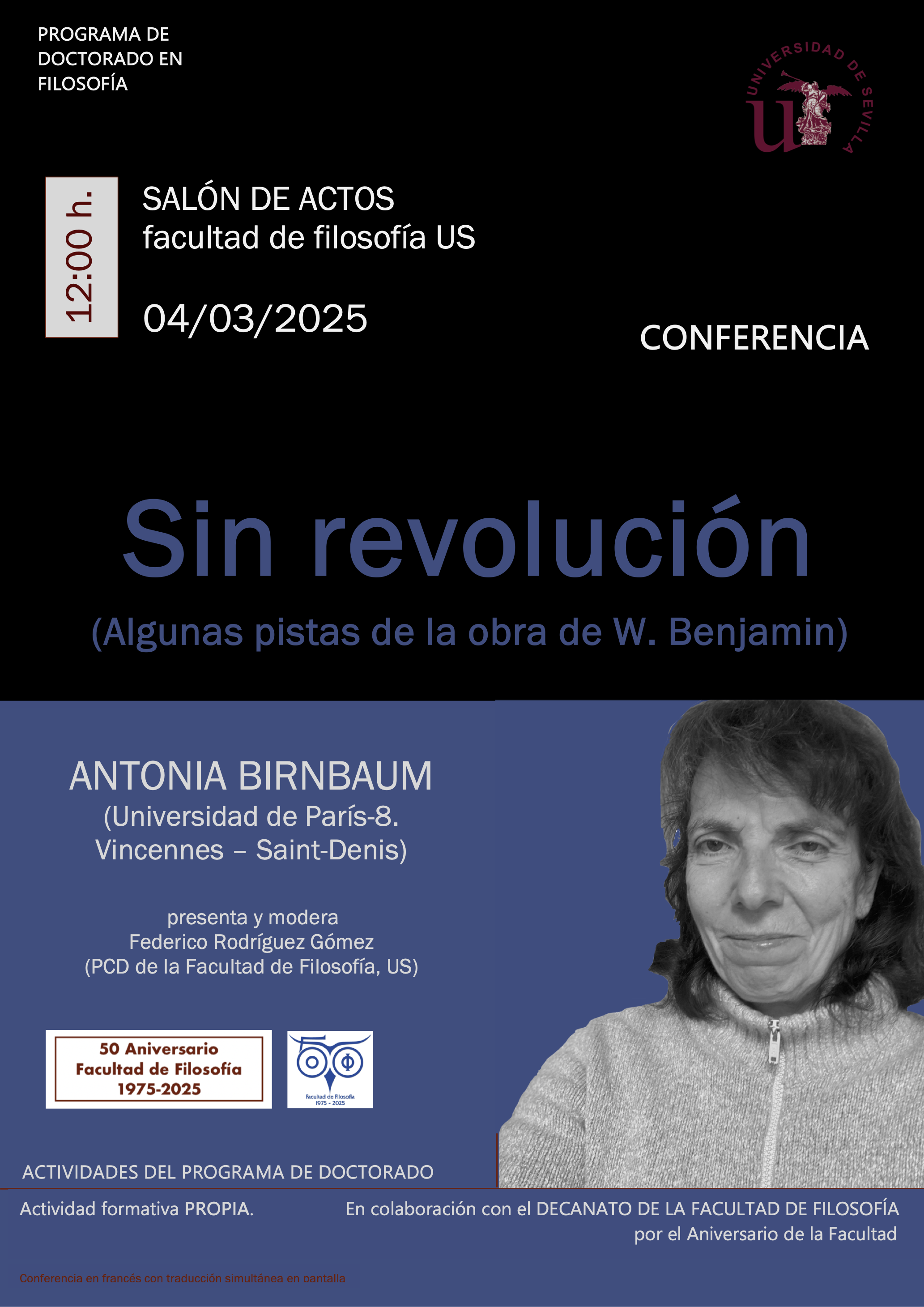 Conférence d’Antonia Birnbaum : Sans révolution (Alignements de pistes de l’oeuvre de W. Benjamin) 4.03.2025