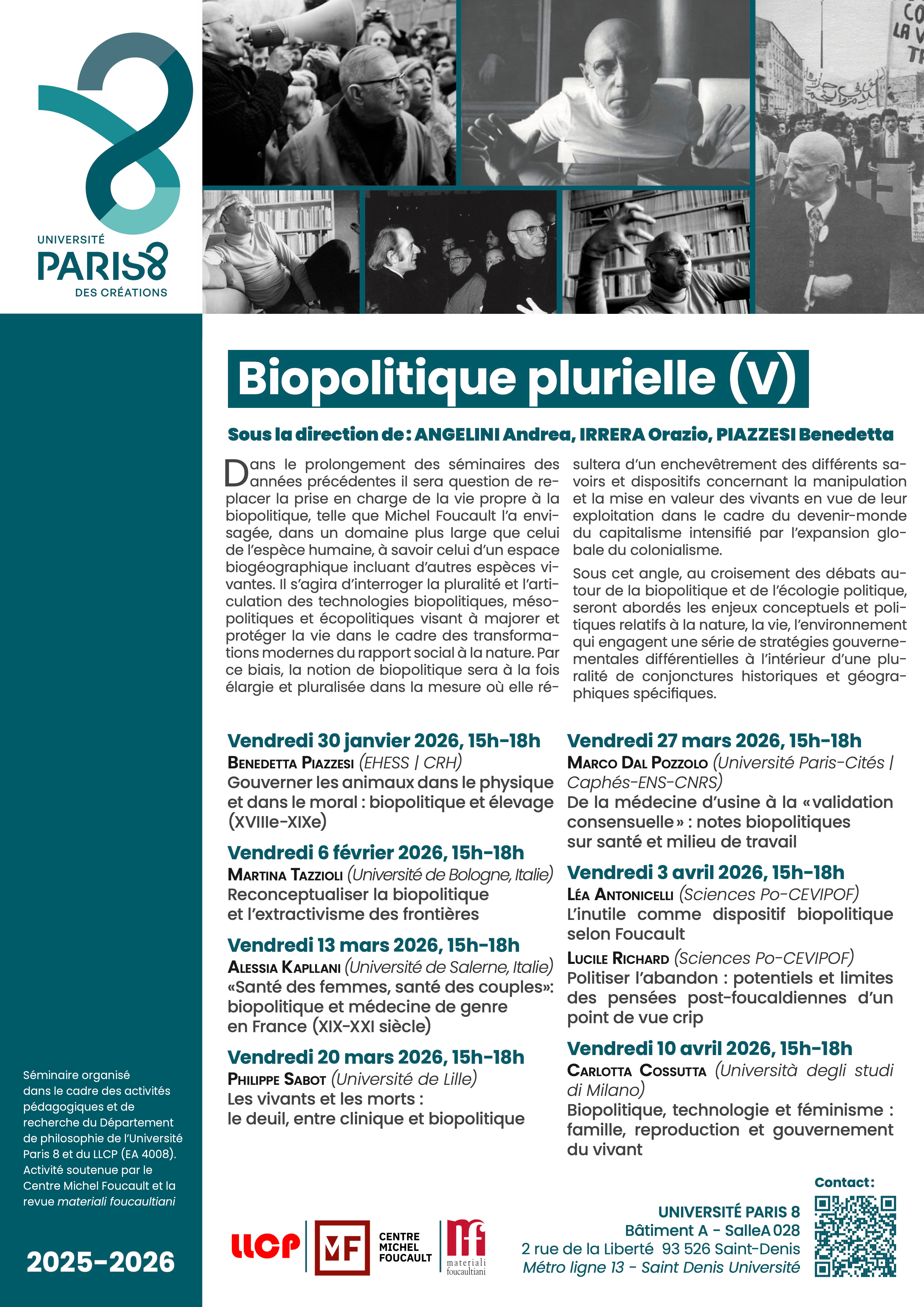 Séminaire permanent Foucault à Paris 8. Biopolitique plurielle (V). 2ème semestre 2025-2026